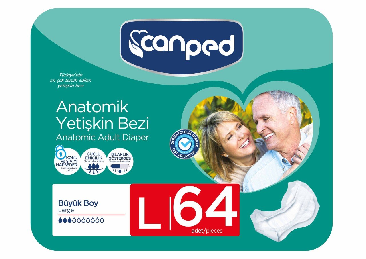 Canped Anatomik Bez Büyük Boy (L) 64 Adet (8X8) Koli İçeriğine Sahiptir.