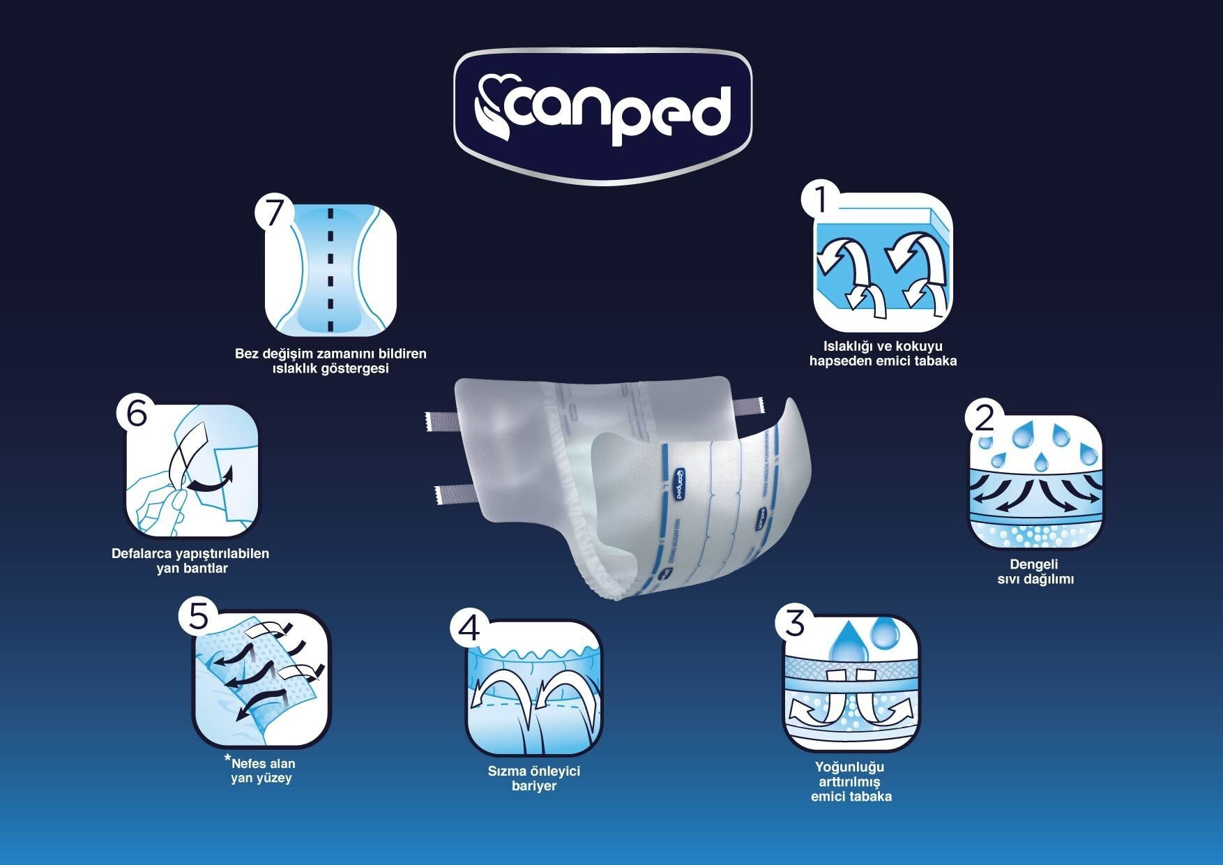- Islaklık ve kokuyu hapseden özel emici tabakası sayesinde kuru ve güvende hissettirir.